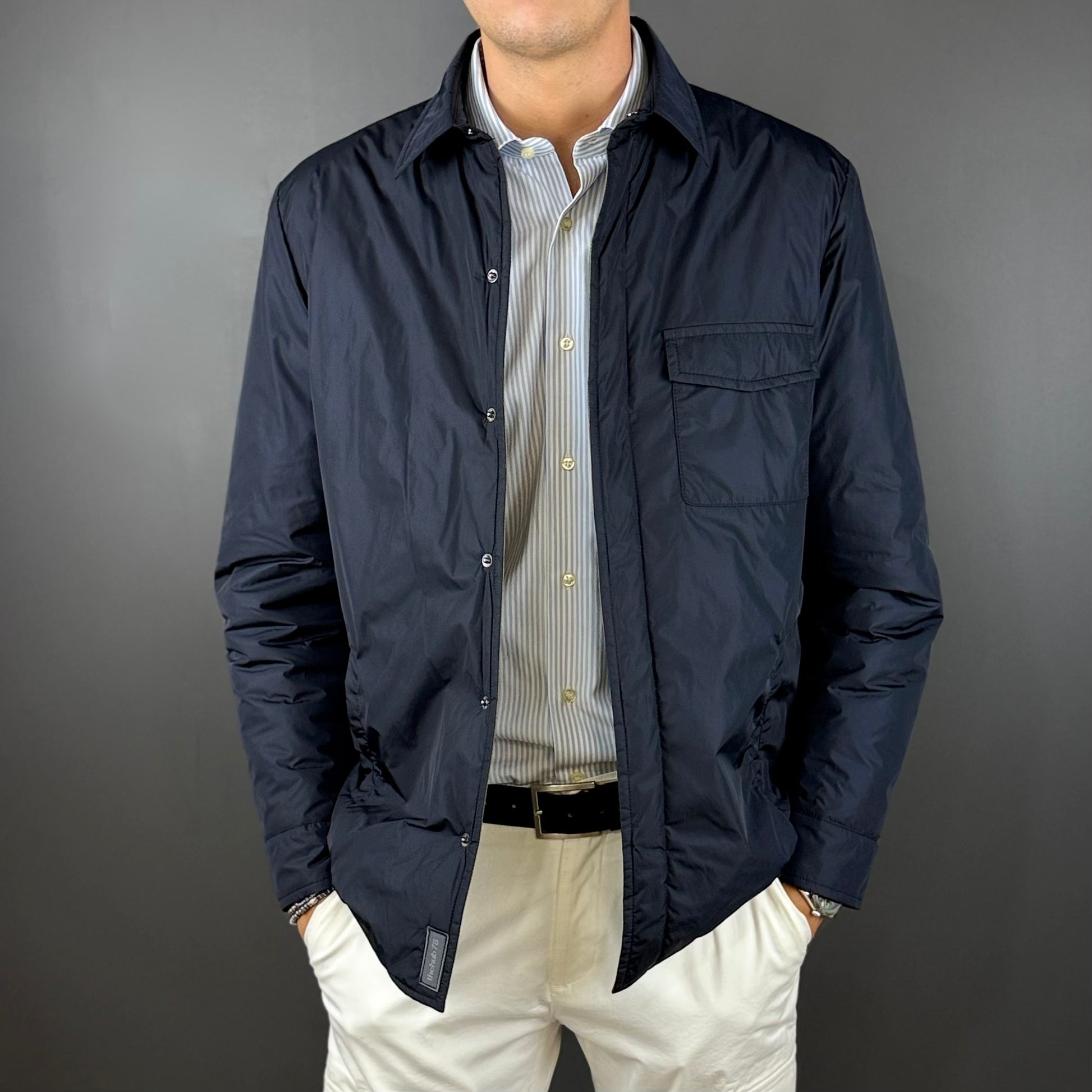 El modelo OTAWA es una chaqueta urbana de tejido técnico cortavientos con un acolchado muy ligero y cálido. Interior en color kaki y botones a presión.